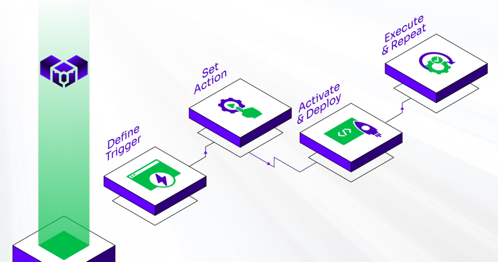 You define an on-chain trigger, telling the engine to listen for a specific event (e.g., a Mint event) on a designated smart contract and blockchain network.
