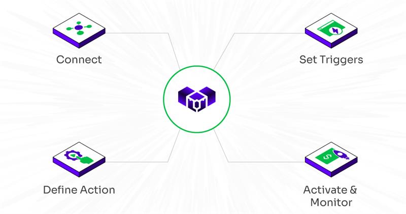 Connect > Set Triggers > Define Action > Activate and Monitor)