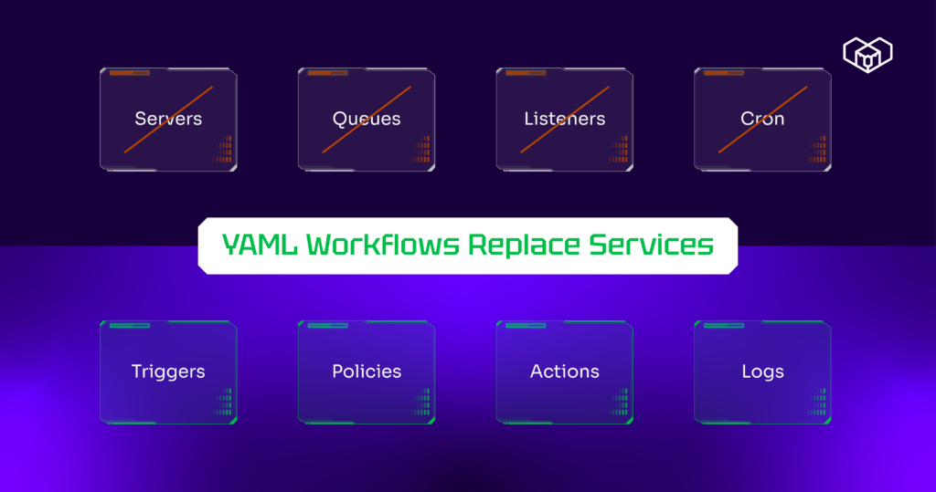 - YAML workflows replace internal services