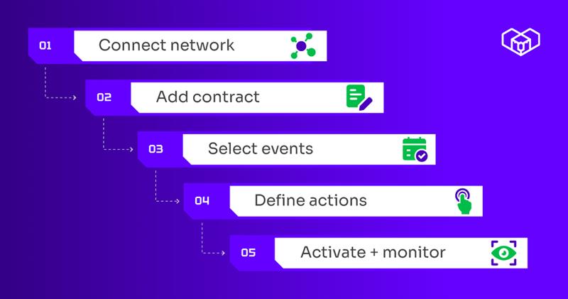 Because everything is decentralized, no code, and powered by Web3 workflow automation, you can build and manage logic across networks from a single place.