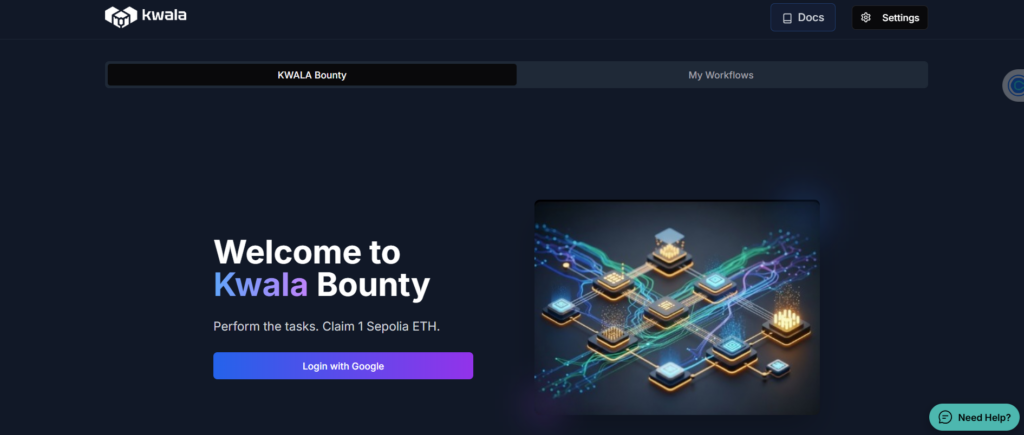 Open kwala website and connect your metamask wallet. Approve the connection request in your MetaMask wallet to link it with the KWALA network. Then click on “Create Workflow” and follow these steps: