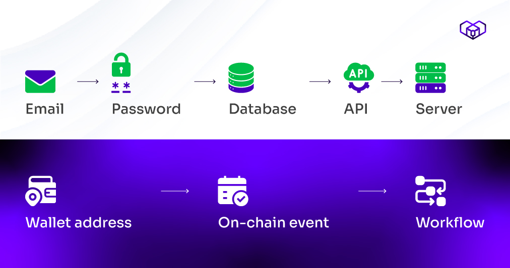 When the backend is built to monitor and act, a wallet address is all the onboarding a Web3 application really needs.